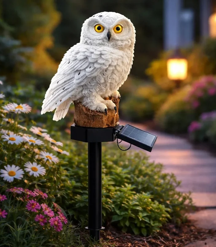 Transforme seu jardim com a coruja das neves, uma peça charmosa que une decoração e iluminação sustentável. Com luz LED quente e suave, ela cria um ambiente acolhedor e encantador em áreas externas como jardins, caminhos, pátios e gramados, trazendo mais vida e beleza ao espaço tanto de dia quanto à noite. Funciona com energia solar, carregando durante o dia e acendendo automaticamente à noite, sem necessidade de fios ou energia elétrica. Produzida em resina resistente, é durável e suporta chuva, sol e outras condições climáticas, sendo ideal para uso externo.