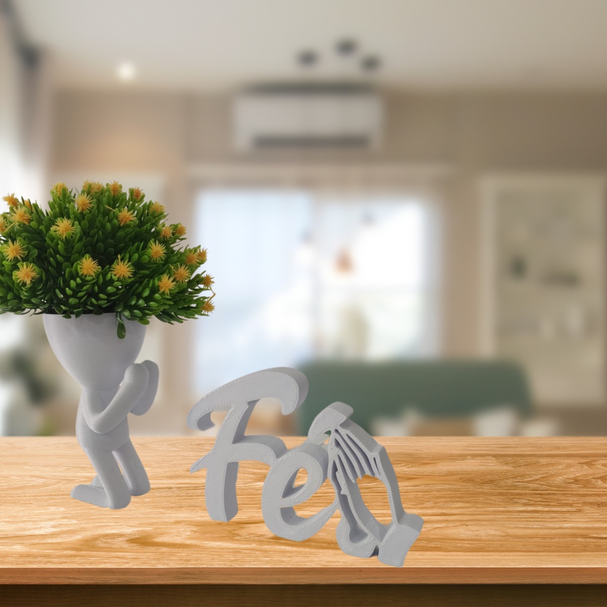 Enfeite sua casa com fé e estilo: Kit Decoração Religiosa com Vaso Orando e Letreiro 3D “Fé”!